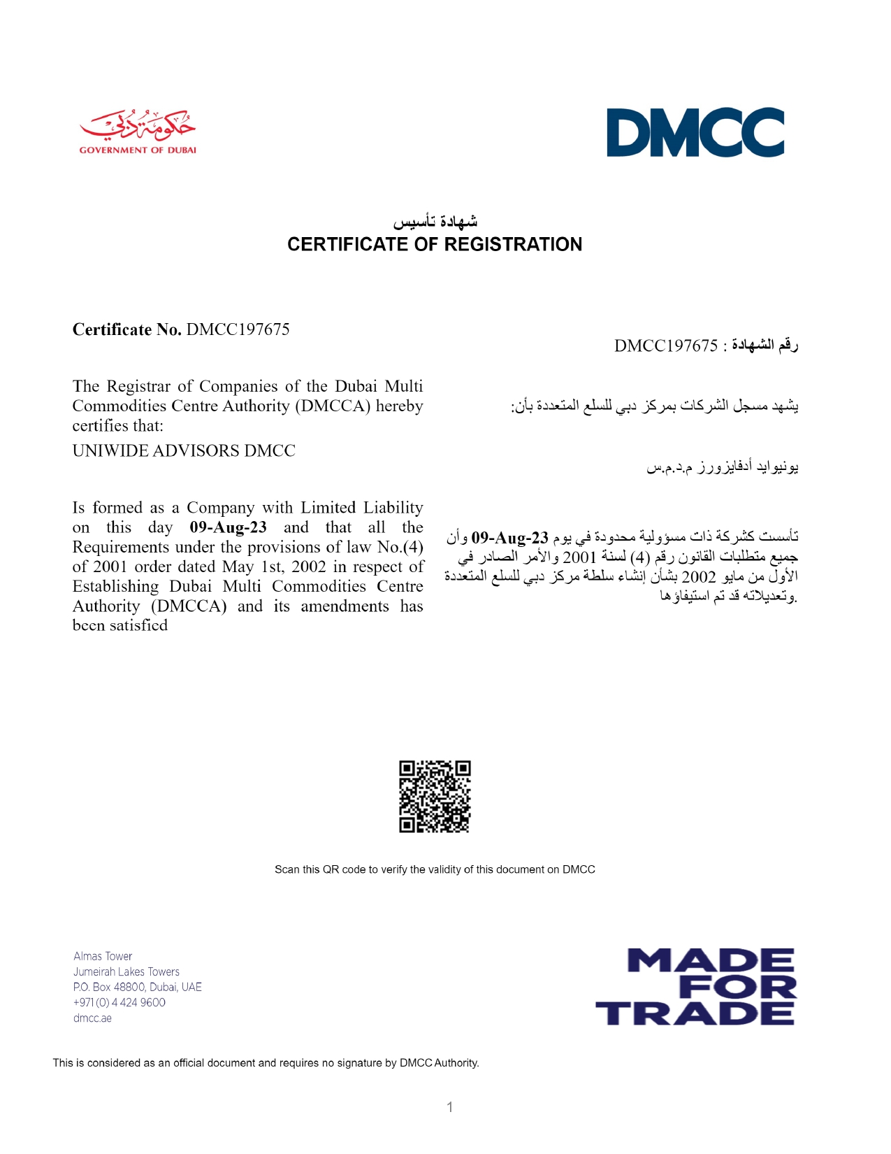 The United Arab Emirates, and Dubai in particular, are known for their dynamic business environment, and our office here is strategically located to work in this active market. As a hub of international trade and finance, Dubai offers unprecedented opportunities for companies wishing to expand their global presence.